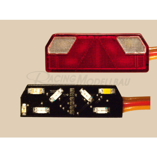 Die Module sind mit je sieben SMD Leuchtdioden ausgestattet und haben auf der Rückseite je einen Ausgang mit Vorwiderstand zur freien Belegung (für z.B. eine Begrenzungsleuchte oder Nummerntafelbeleuchtung)