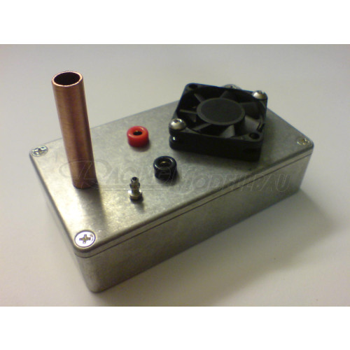 Wie auf dem Foto zu ersehen, besteht er aus einem Aluminiumbehälter. Die Heizelemente und der Lüfter müssen mit 12 Volt betrieben werden.