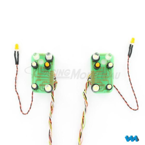 MAN Scheinwerferplatine, 7,2 Volt, folgende Lichtfunktionen : Blinker, Standlicht, Nebelscheinwerfer, Fernlicht, Fahrtlicht, Abbiegelicht , passend für den MAN von Tamiya, Inhalt : 1 rechte Platine, 1 linke Platine, Anleitung