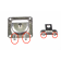 Eine Zurrtasche besteht aus drei Teilen: Wanne, Öse und untere Abdeckung. Die roten Markierungen zeigen die Anguss-Stifte. Diese vorsichtig entfernen, damit die vernickelte Oberfläche auf den später sichtbaren Seiten nicht abgeschliffen wird. Untere Abdeckung nach dem Einschieben der Öse aufsetzen und mit Kleber fixieren.
